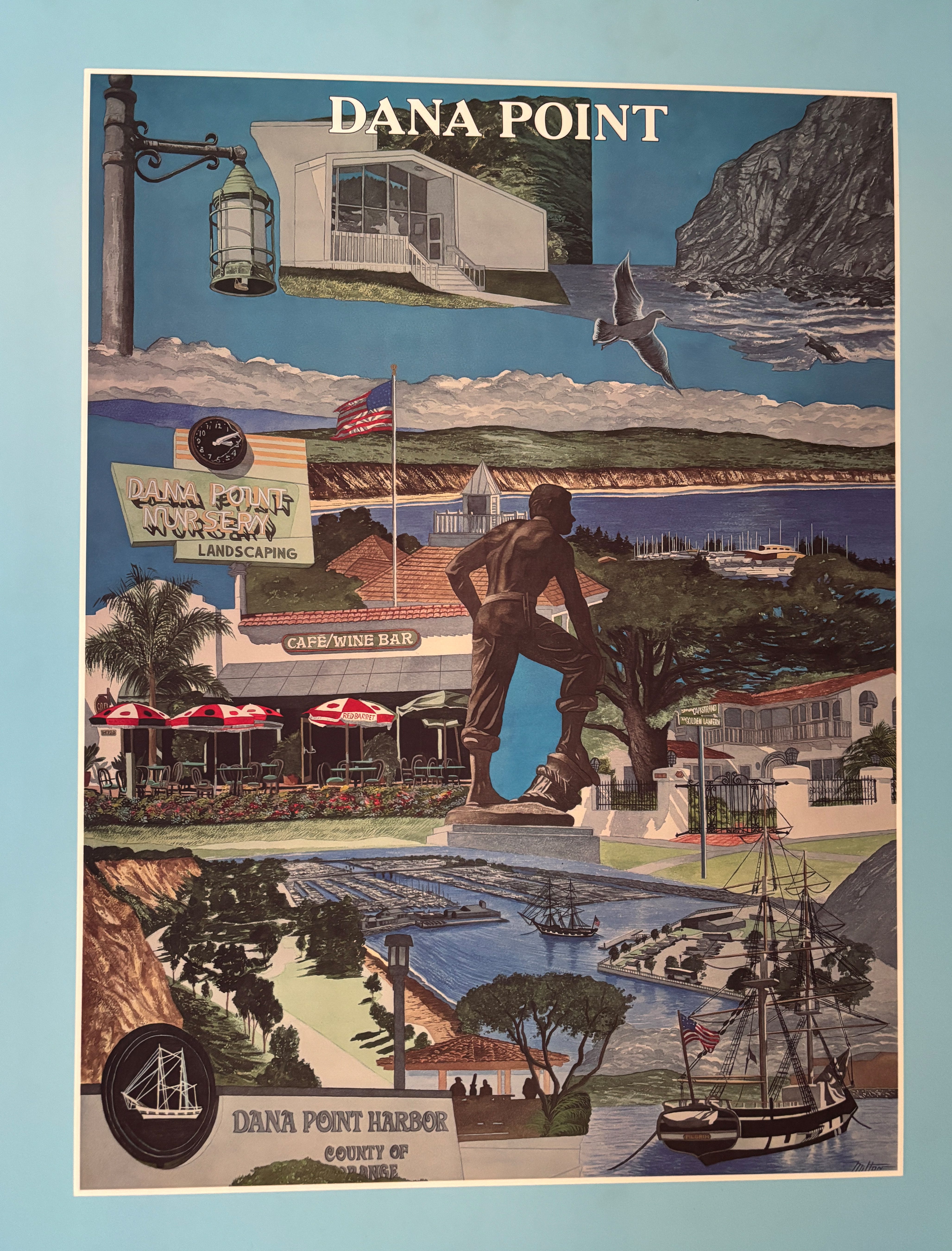 Barbara Johannes and Heidi Hyde followed with a history presentation about a recent acquisition of a painting, created 40 years ago by artist David Milton, featuring various sites of Dana Point, pictured.